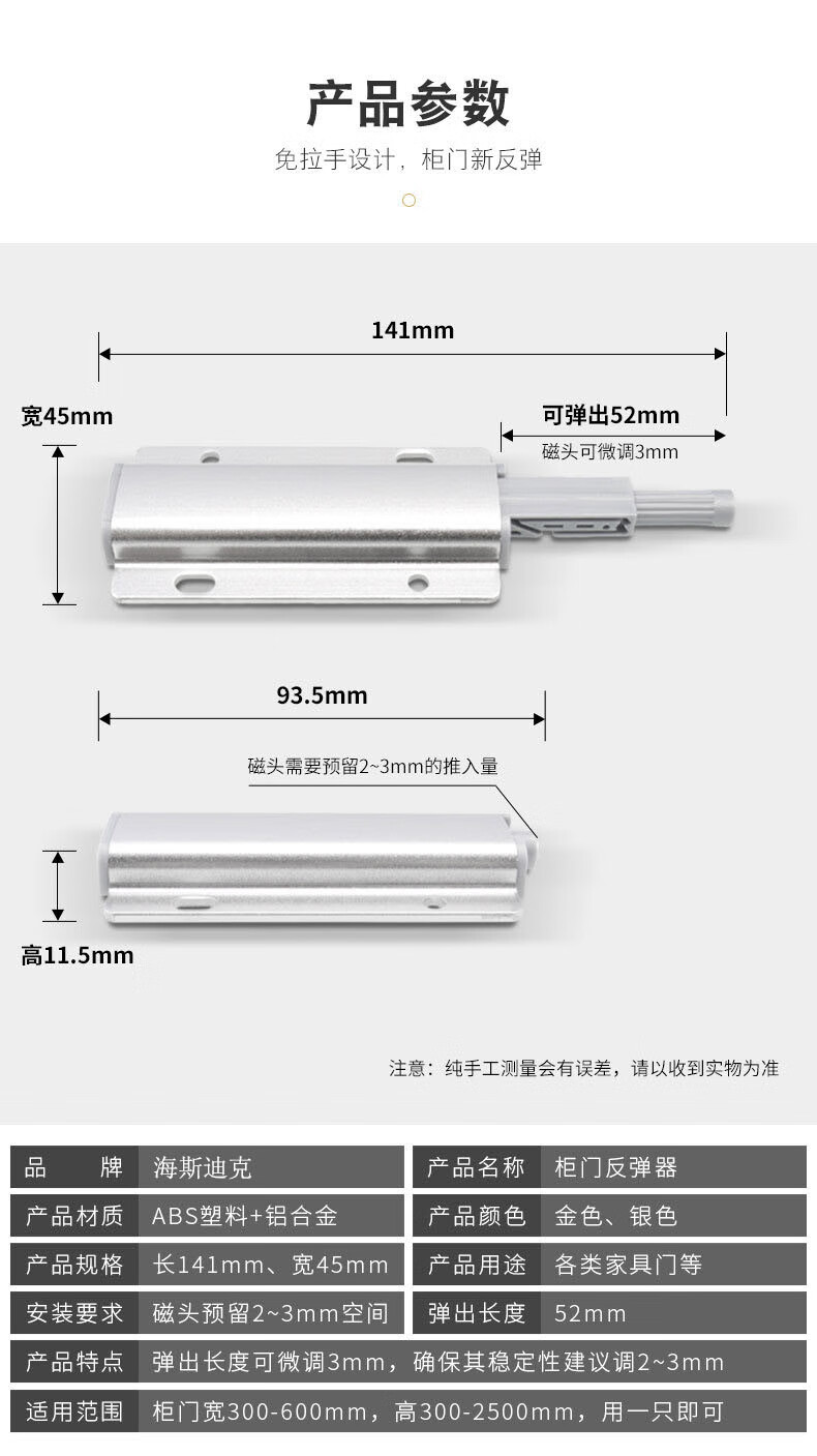 海斯迪克 柜门反弹器 gnjz-5072 ABS+铝合金 银色 1个