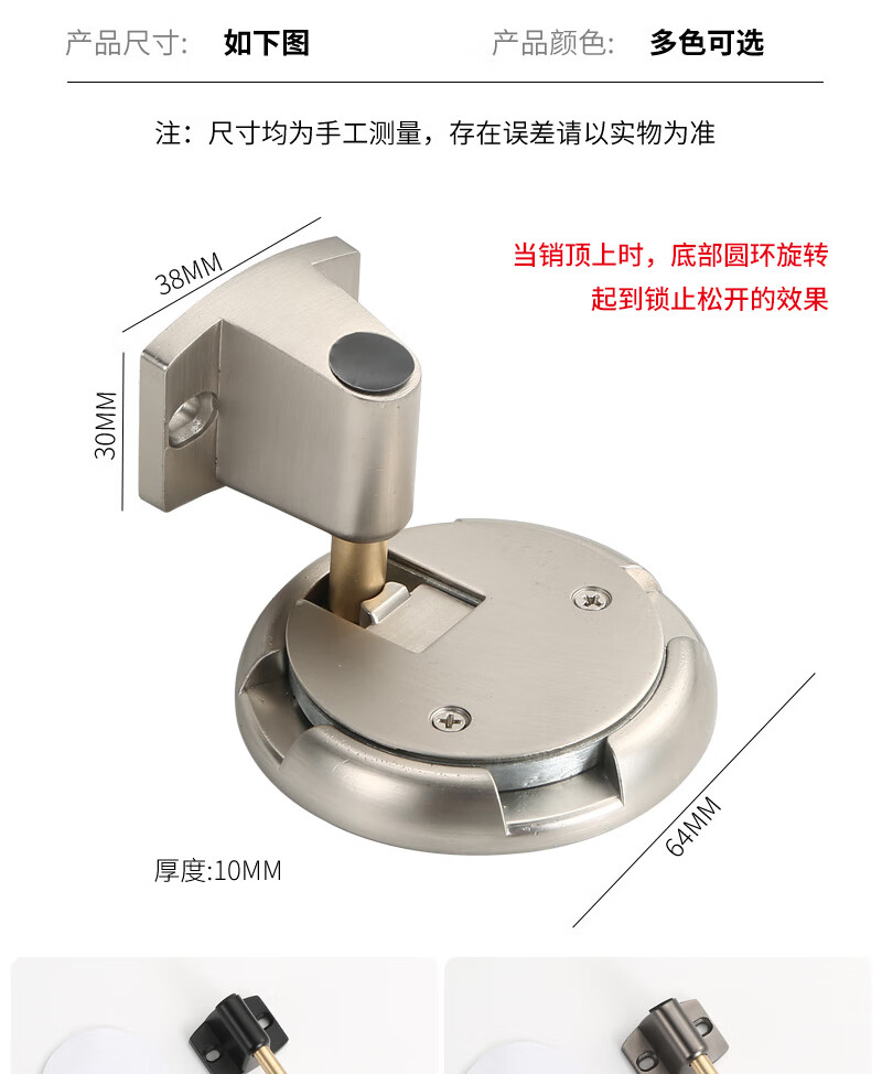 海斯迪克 可调节无磁门吸 gny-688 锌合金+铜 雅黑色 1个