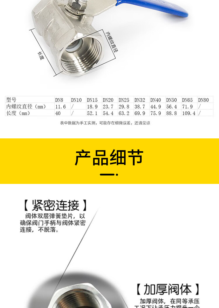 冰禹 304不锈钢一片式内螺纹球阀 BYS-121 DN40 1个