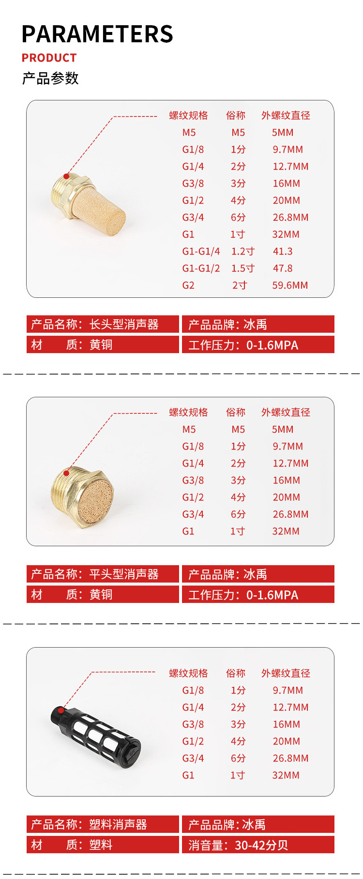 冰禹 堵头配件 BYS-154 铜长头消声器4分 5个 1包