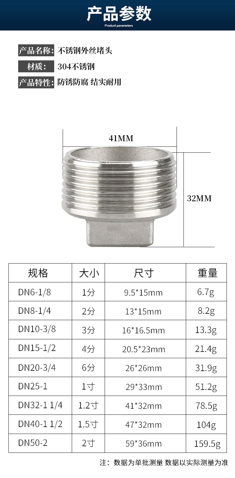 冰禹 304不锈钢四角塞头 BYC-189 DN32(1-1/4) 1个