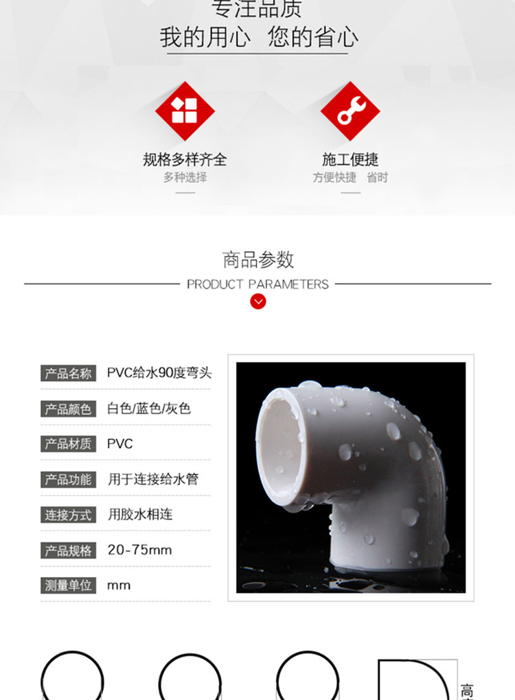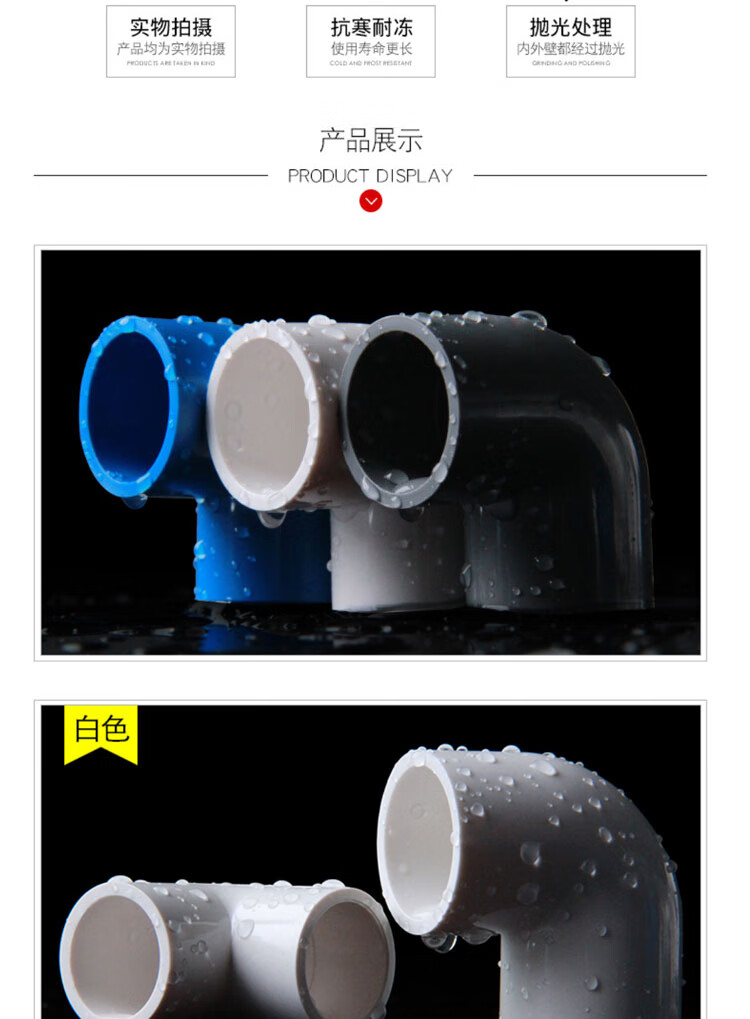 冰禹 PVC直角90度接头 BY-2343 白色 32mm 50只 1件