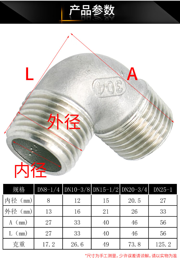 海斯迪克 双外丝弯头 gnjz-2031 304不锈钢 DN20-3/4 1个