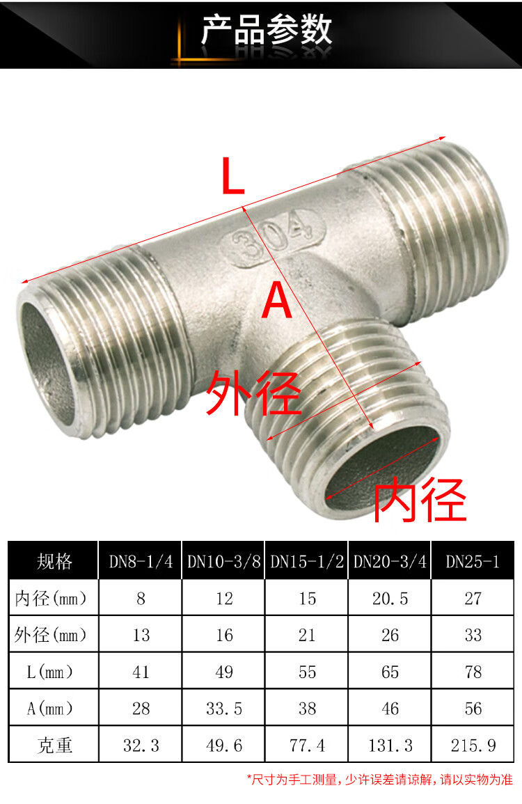 海斯迪克 外丝三通 gnjz-2029 304不锈钢 DN15-1/2 1个