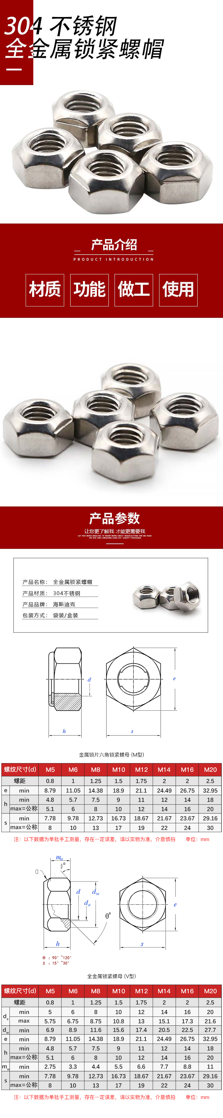 海斯迪克 全金属锁紧螺母 HKYC-114 DIN980 M10-M型 2个 1包