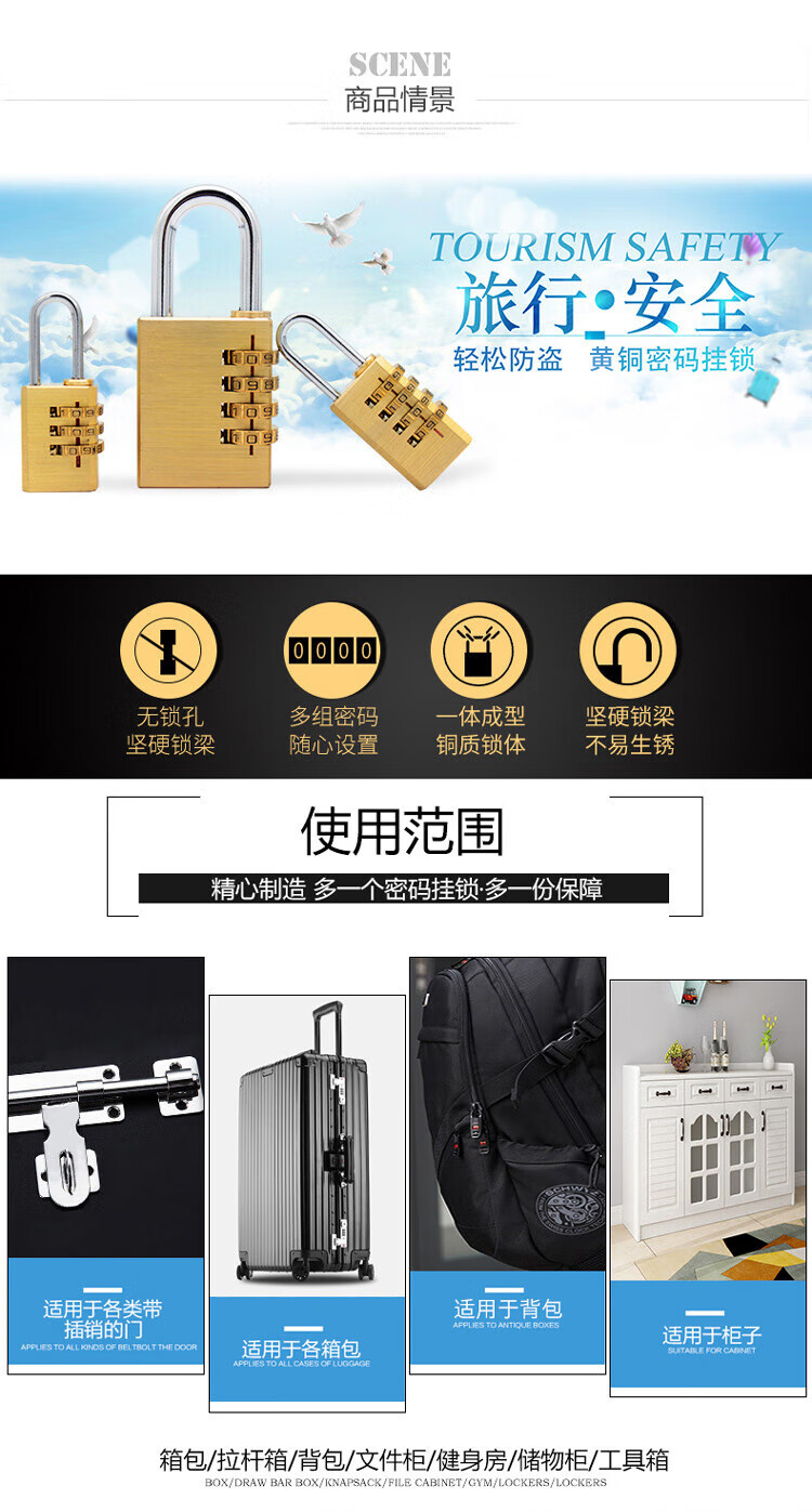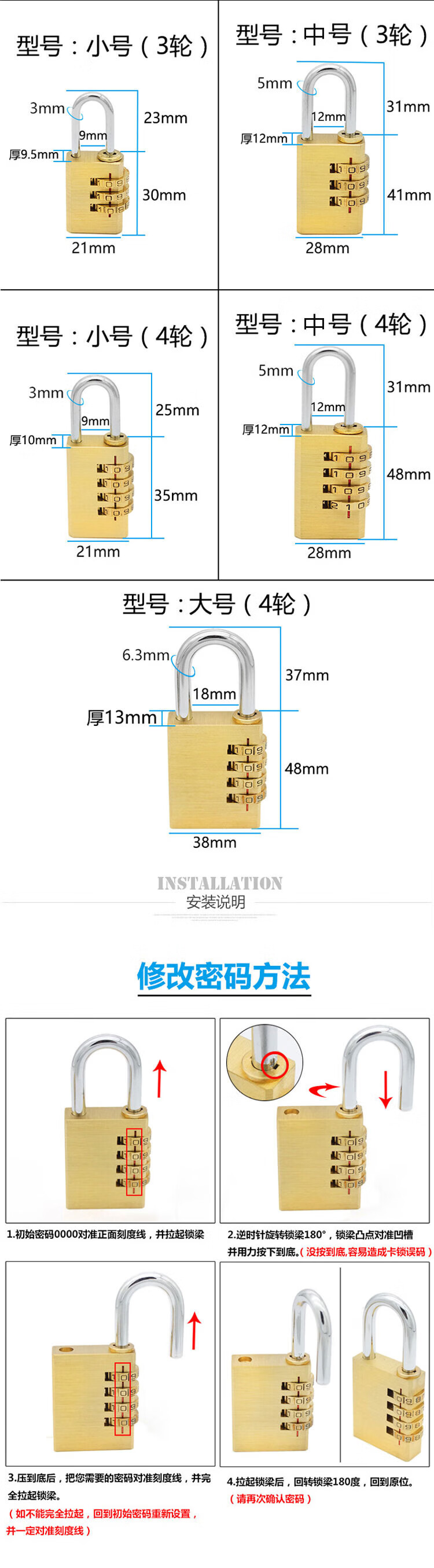 冰禹 黄铜密码挂锁 BYP-117 3轮密码(中号) 1个