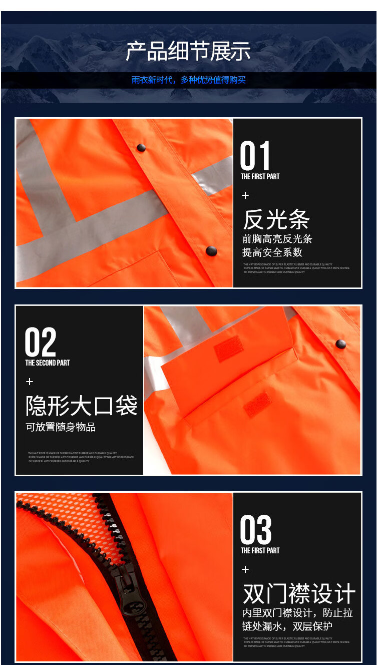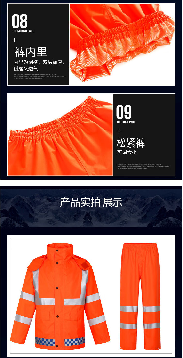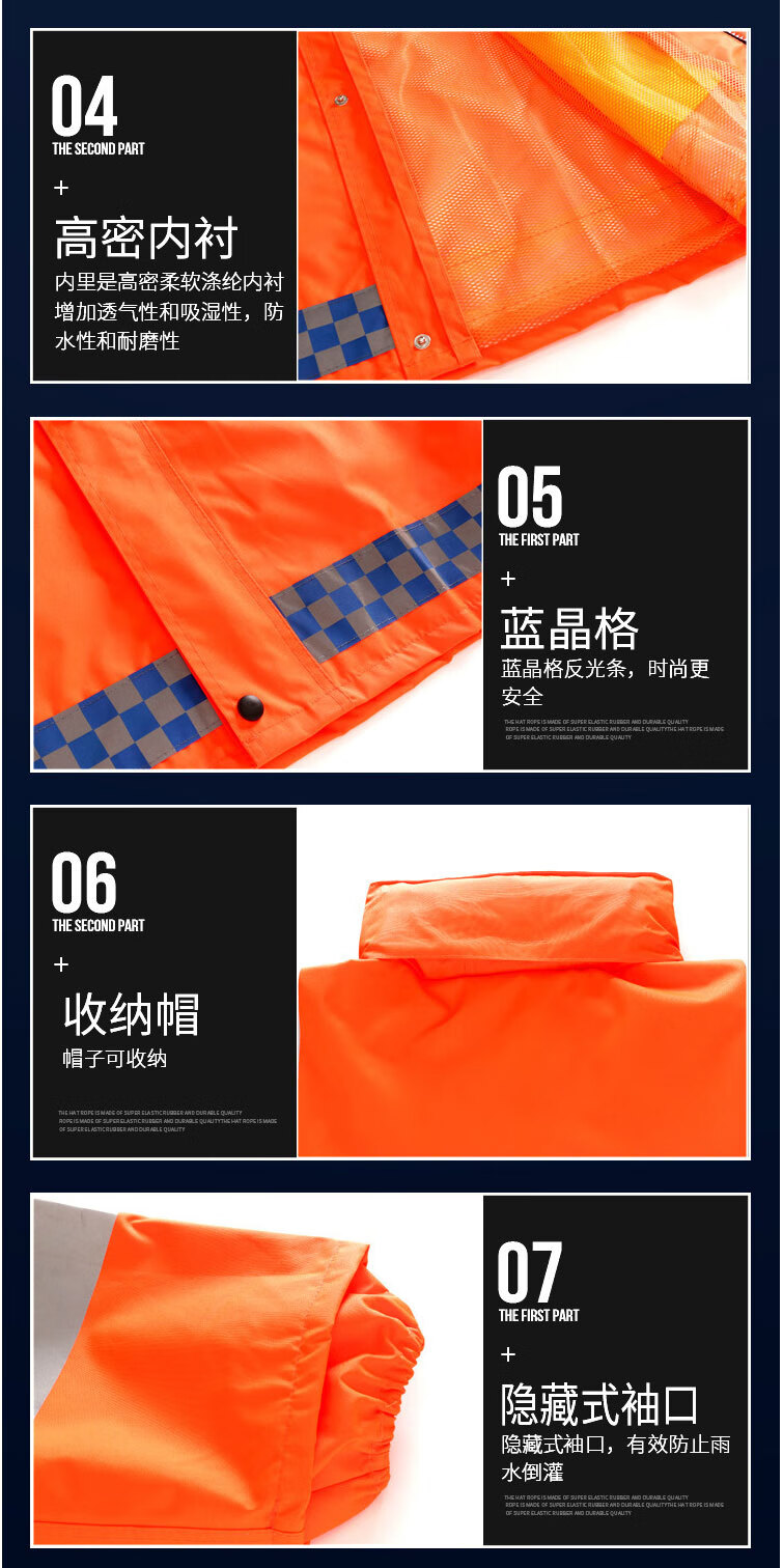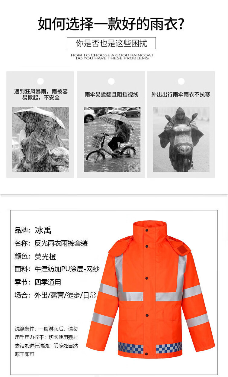 冰禹 反光雨衣雨裤套装 BYC-350 荧光橙 XL 1套