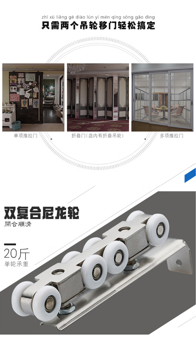 冰禹 双杆轮吊轮 BYcz-36 不锈钢 6轮吊轮 1对