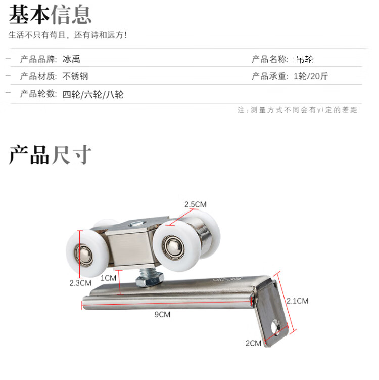 冰禹 双杆轮吊轮 BYcz-36 不锈钢 8轮吊轮 1对