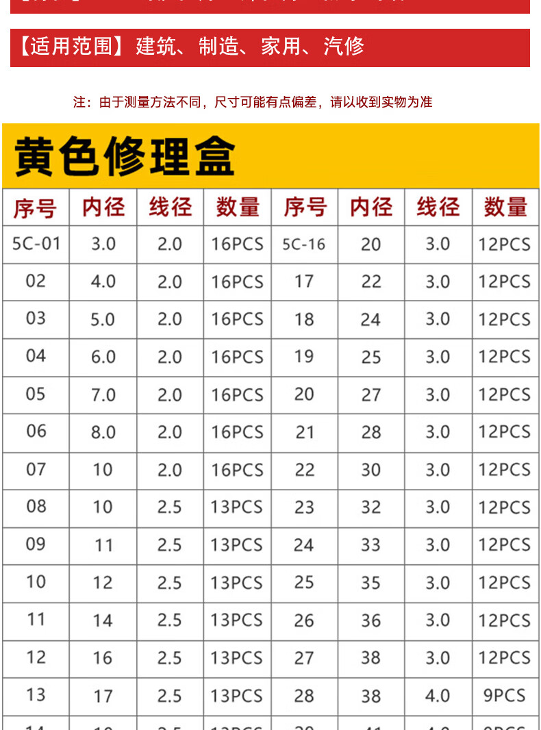 冰禹 丁腈O型圈套装 BK-64 日标丁腈黄盒一盒386PCS 386个 1盒