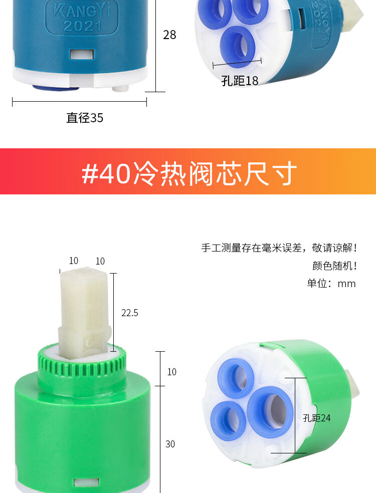 40mm淋浴阀芯颜色随机1个