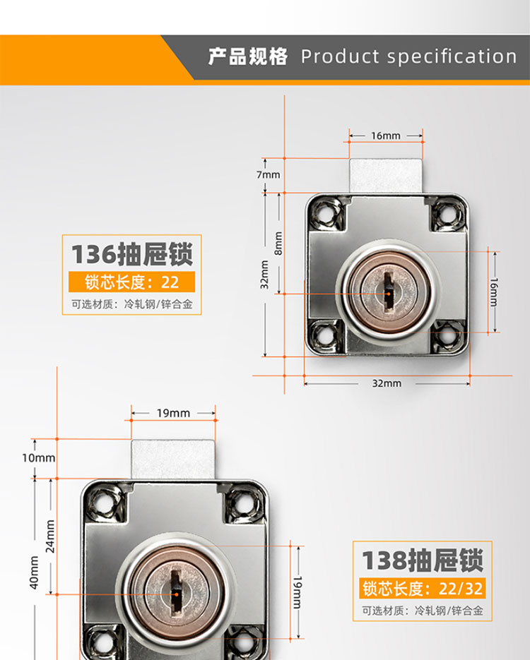 冰禹 平头加厚门柜锁 BYB-21 锌合金 138-32 1个