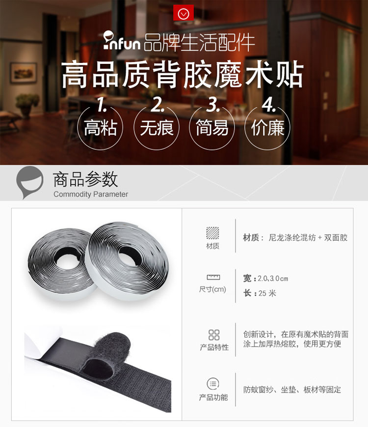 • 规格3.0cm*25m黑色毛面+黑色勾面