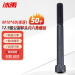 冰禹 圆柱杯头内六角螺栓 BY-488 碳钢 M10*60 发黑 12.9级 半牙 50个 1包