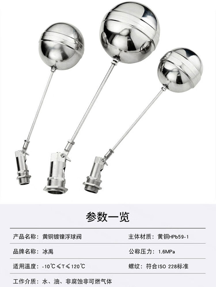 冰禹 黄铜镀镍浮球阀 BYjj-133 DN15 4分 1个