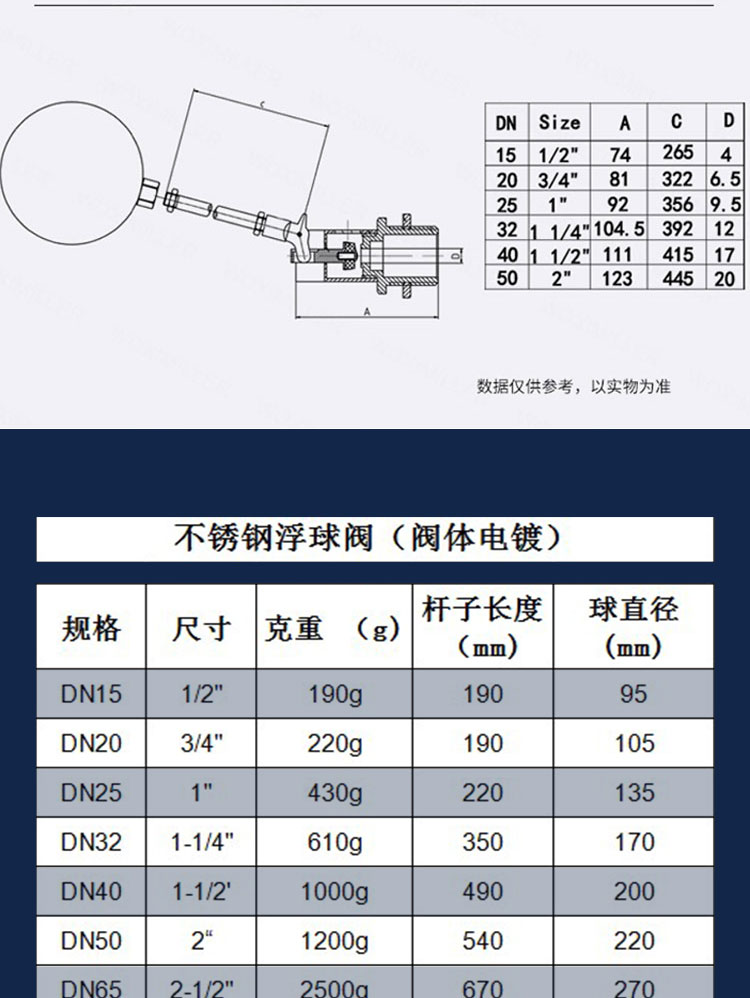 冰禹 黄铜镀镍浮球阀 BYjj-133 DN32 1.25寸 1个