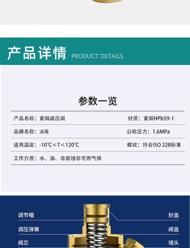 冰禹 双内丝黄铜减压阀 BYyc-173 DN15 双外丝 1个