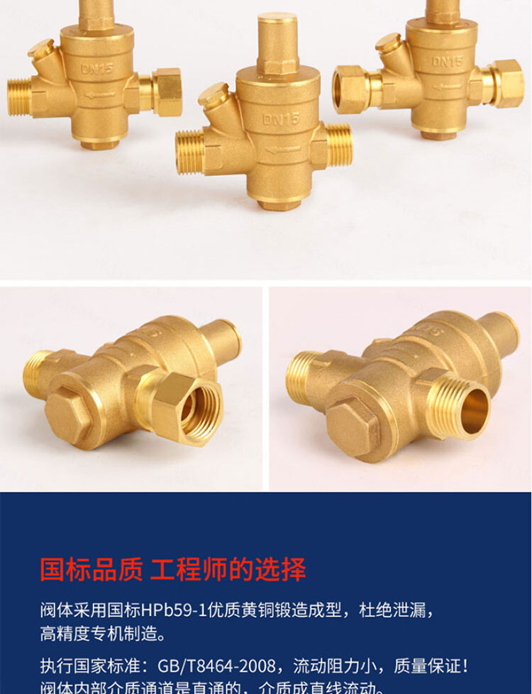 冰禹 双内丝黄铜减压阀 BYyc-173 DN15 进水滑帽 1个