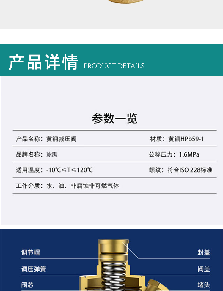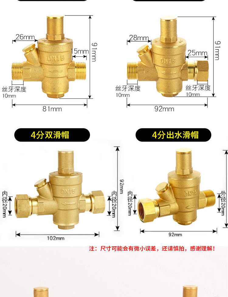 冰禹 双内丝黄铜减压阀 BYyc-173 DN15 出水滑帽 1个
