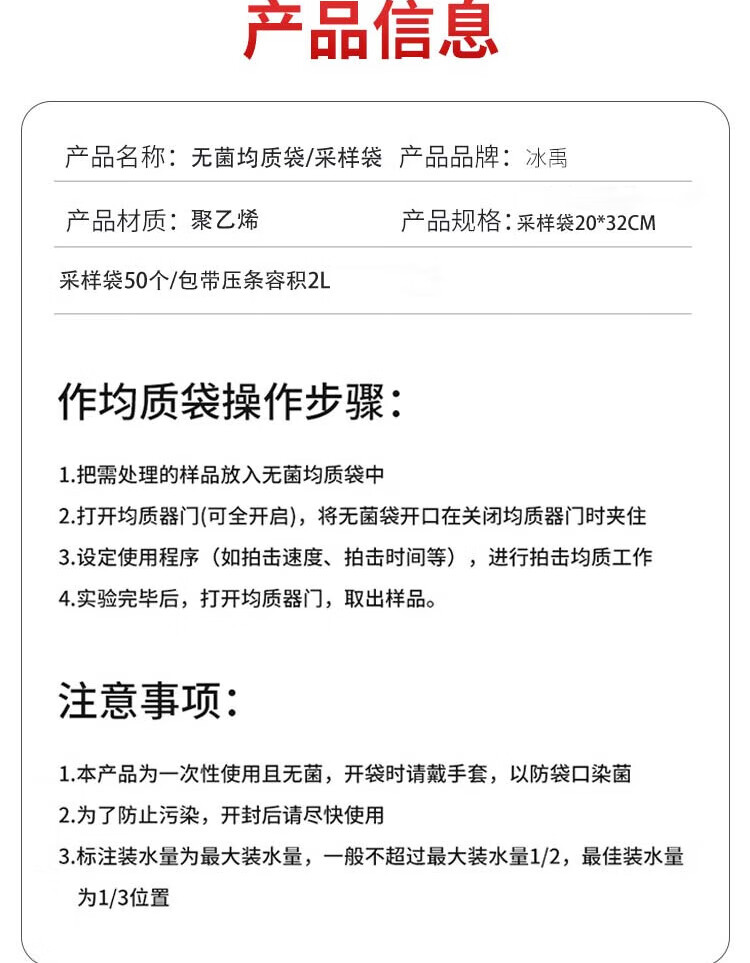 冰禹 无菌采样袋 BYA-609 20*32cm 50个 1包