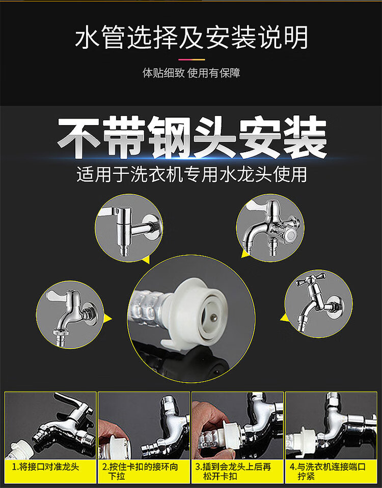 海斯迪克 全自动洗衣机进水管 gncl-13 PVC 白色 3米带钢头 1根