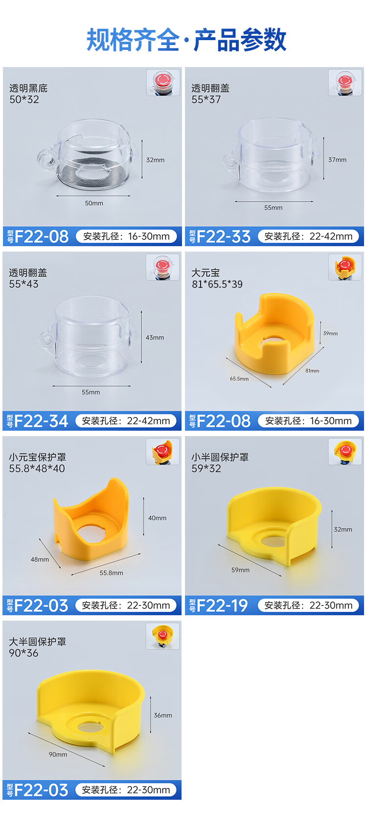 冰禹 急停按钮保护罩 BYyn-211 55.8*48*40mm小元宝(黄色)22mm孔径 1个