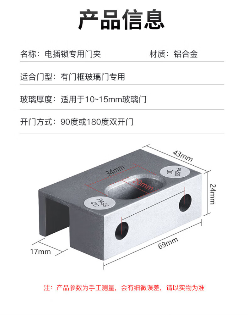 冰禹 门禁电插锁 BYP-324 有门框玻璃门专用小铝夹 1个