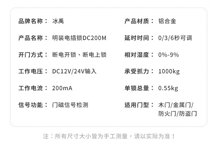 冰禹 门禁电插锁 BYP-313 常闭(断电上锁) 明装 1个