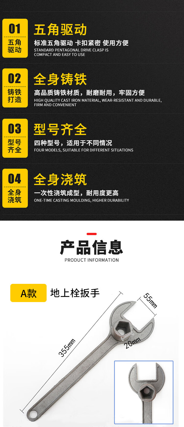 冰禹 消防通用扳手 BYxx-39 B款黑色地下栓专用扳手 1把