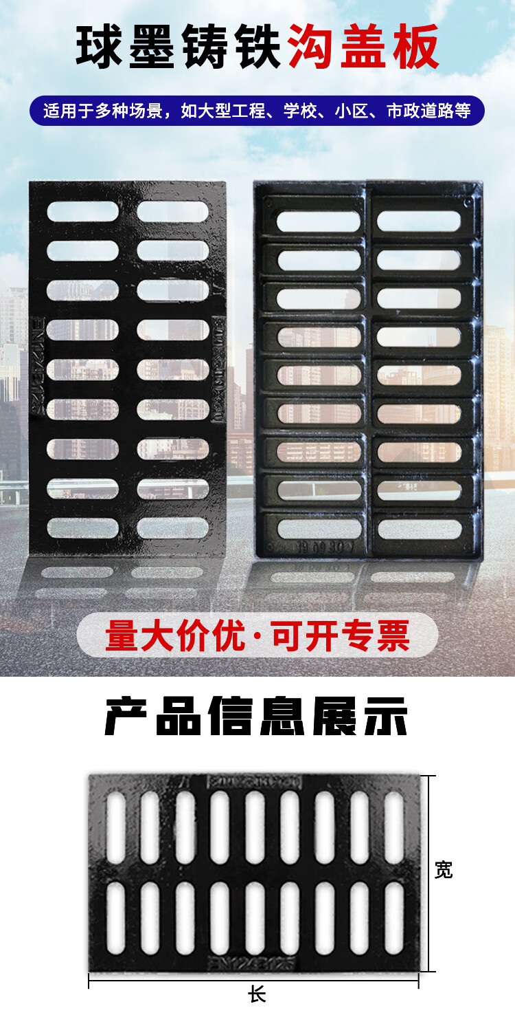 冰禹 球墨铸铁下水道井盖 BYP-397 400*600*30mm 承重3吨叉车款 1个