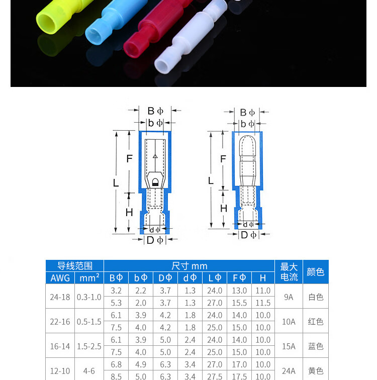 冰禹 尼龙子弹头端子 BYjq-216 黄色公母4-6² 50套 1件