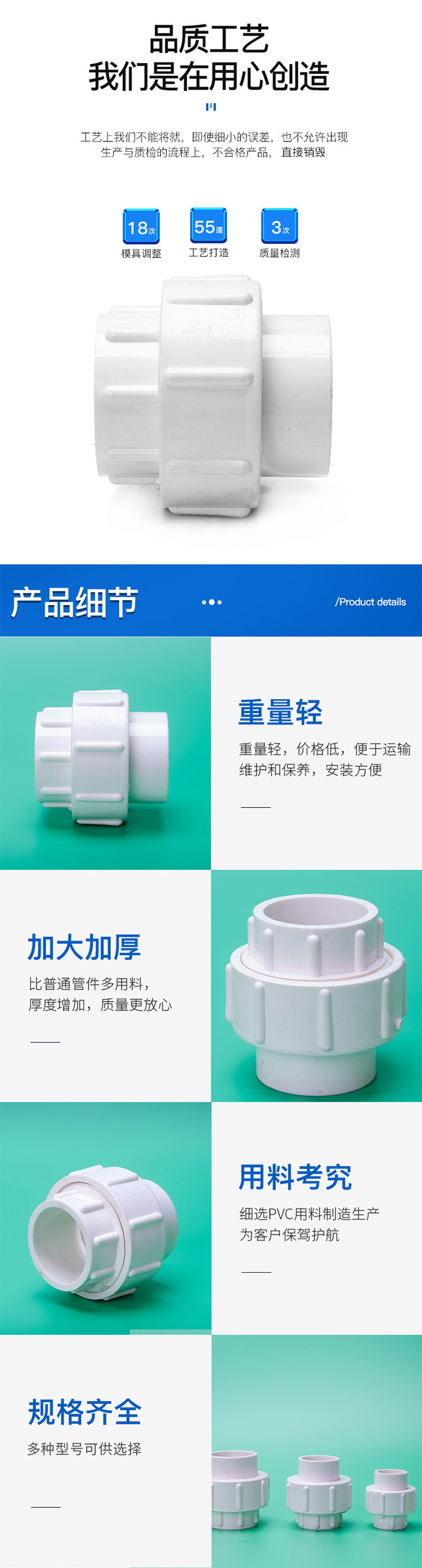 海斯迪克 活接头 gnjz-7254 PVC 63mm 1个