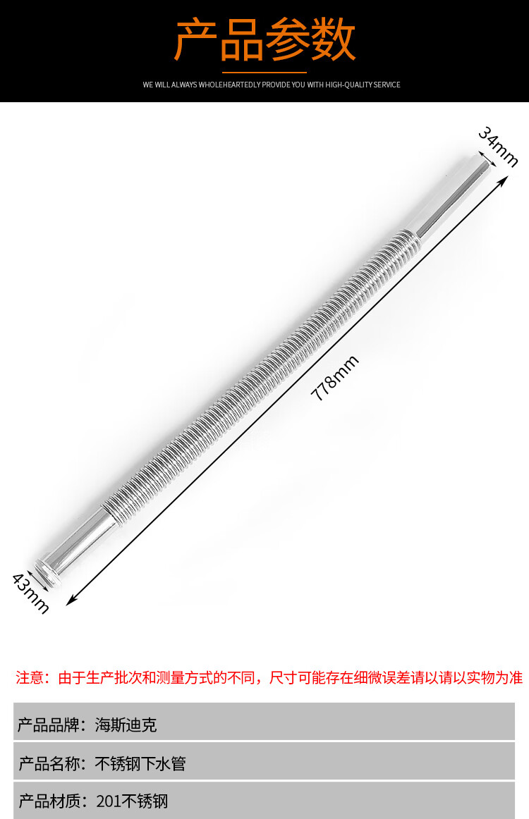 海斯迪克 下水管 gnjz-7279 不锈钢 长778mm 1个