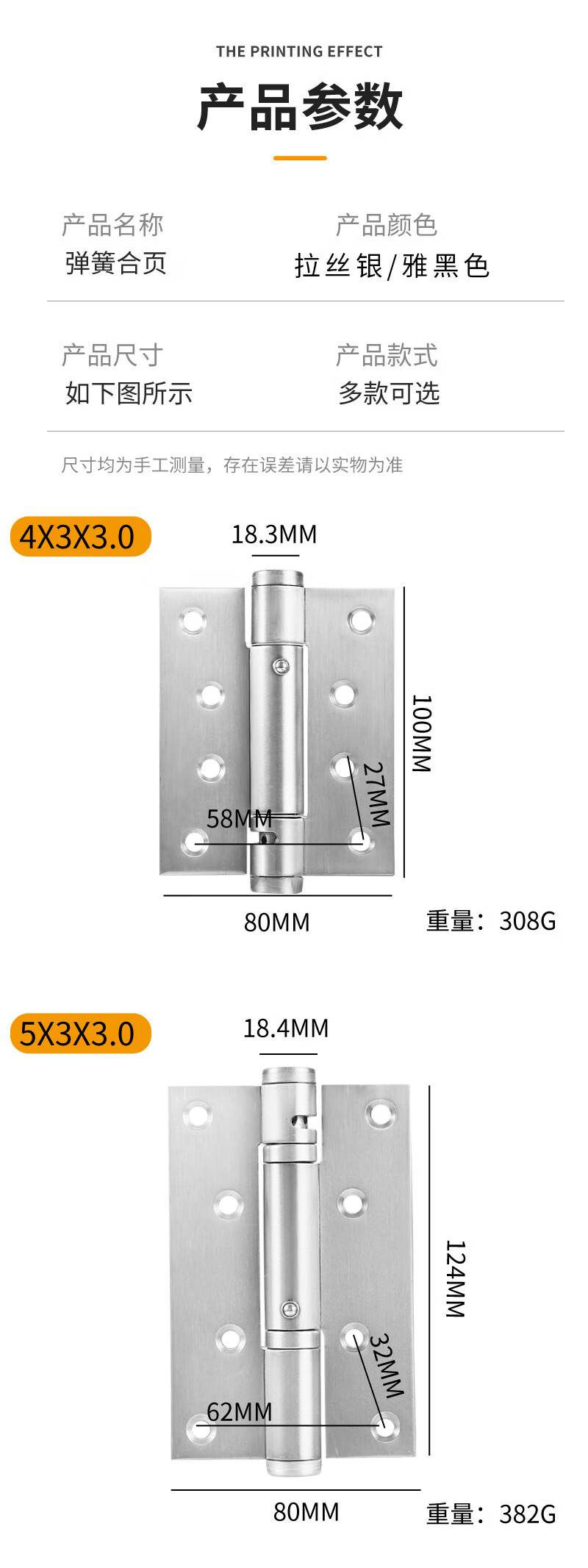 冰禹 90度定位合页 BYC-78 不锈钢 厚拉丝银 4寸 1个