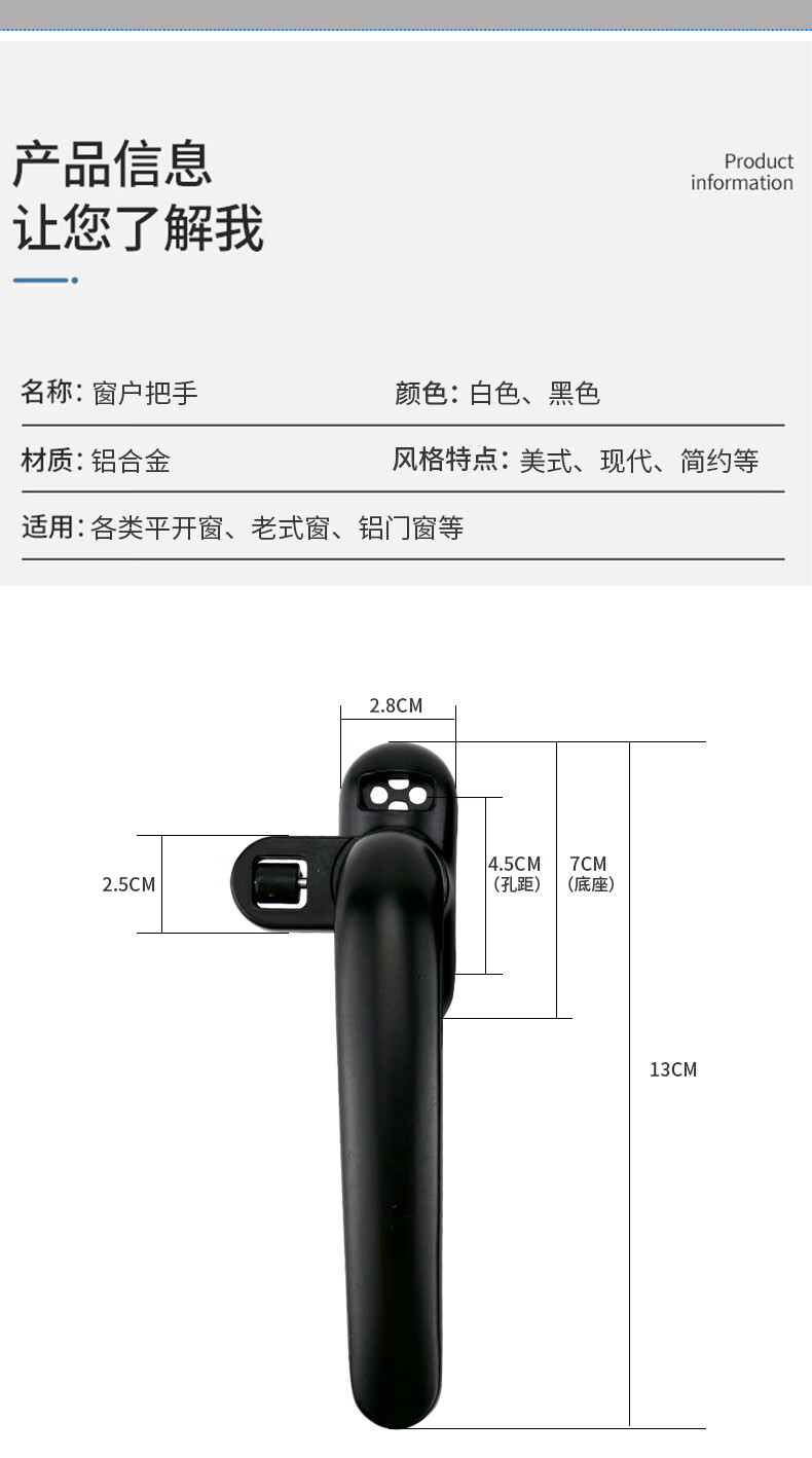 冰禹 窗户把手 BYC-28 铝合金 黑色左方向 1个