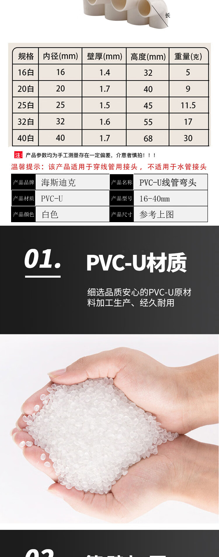 海斯迪克 PVC-U电工90度直角弯头 gnxy-57 Φ32mm 10个 1包