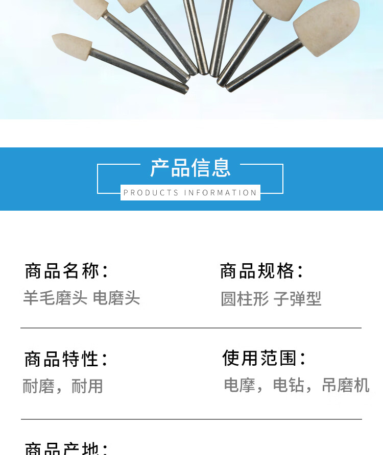 冰禹 羊毛磨头 BYlj-04 3*4 圆柱 12个 1包
