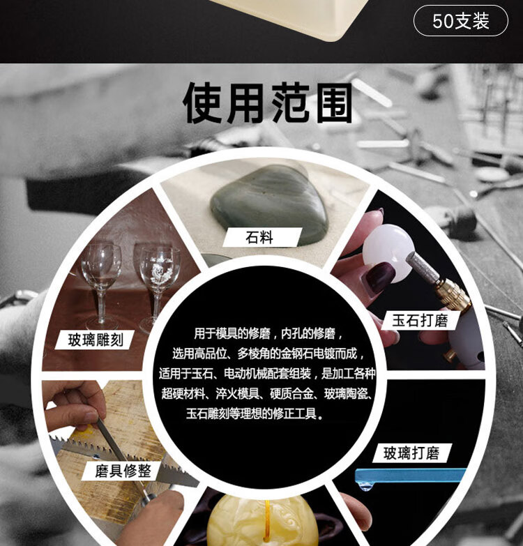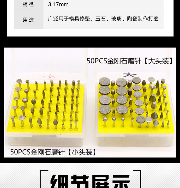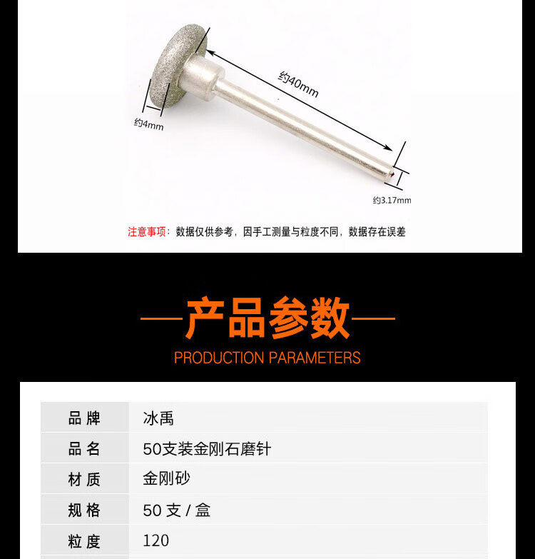 冰禹 金刚砂磨针 BYly-234 金刚砂 小头 50支 1盒