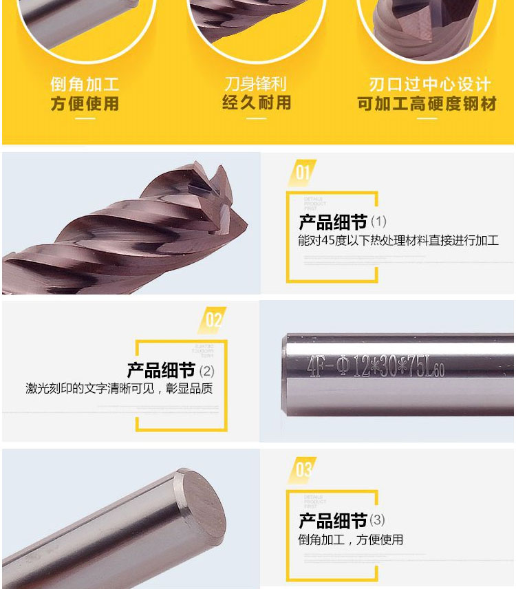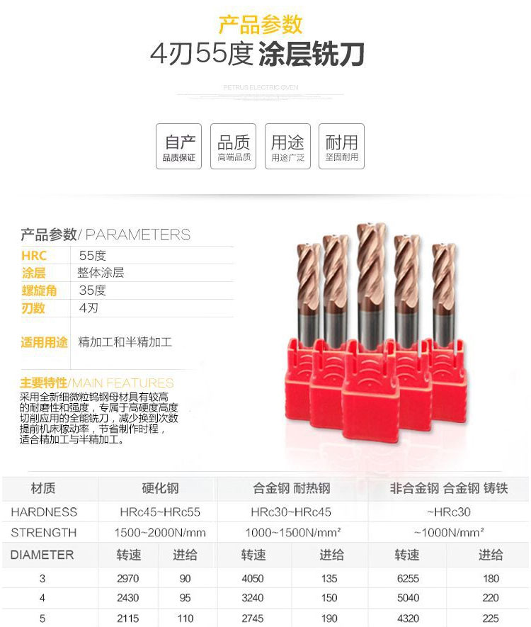 冰禹 55度整体钨钢铣刀 BYC-122 3*4D*50 1个