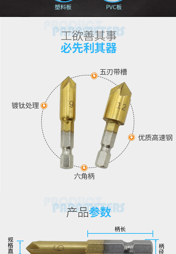 首页>金属加工>磨具刃具>刃具>钻头>冰禹 镀钛六角柄五刃