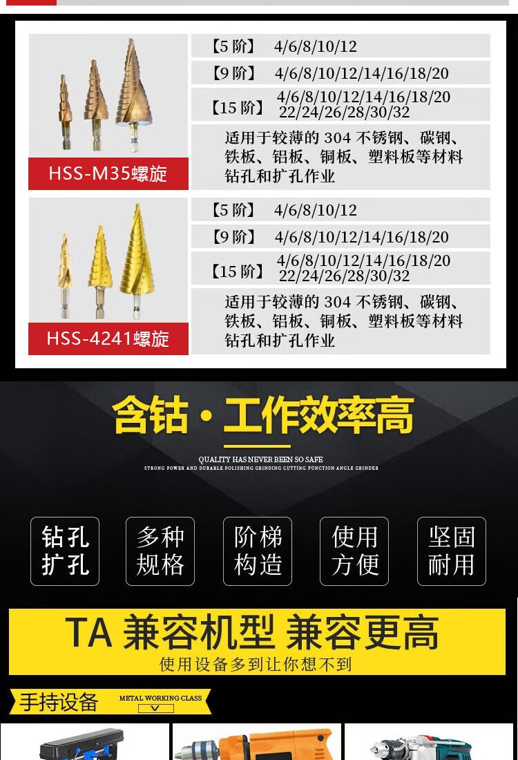 冰禹 扩孔麻花钻套装 BYC-442 3阶梯钻+3锯钻 套装三 6个 1套