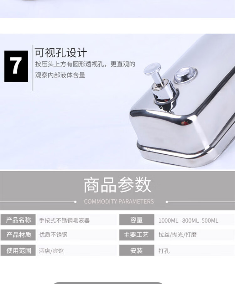冰禹 皂液器 BY-7076 1000ml 不锈钢 1个
