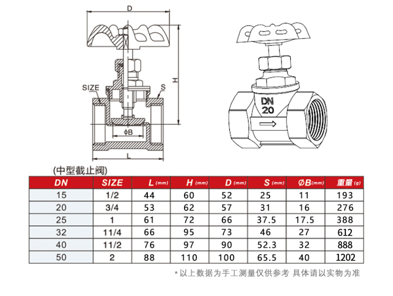 海斯迪克 黄铜截止阀 HKY-212 DN25 1个