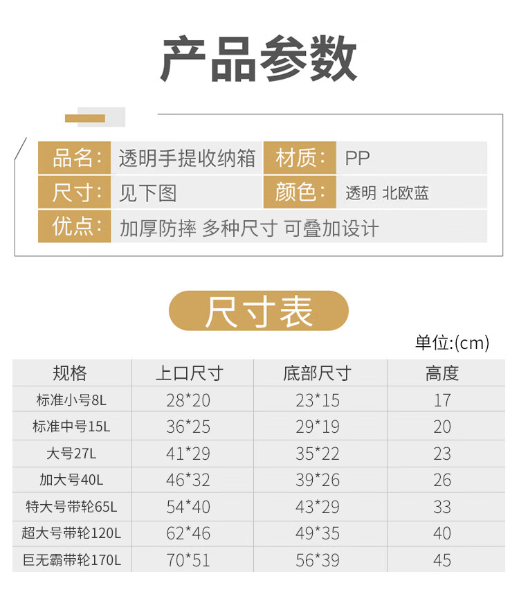 海斯迪克 塑料带提手工具收纳箱 gnjz-733 PP 北欧蓝 标准小号8L 1个