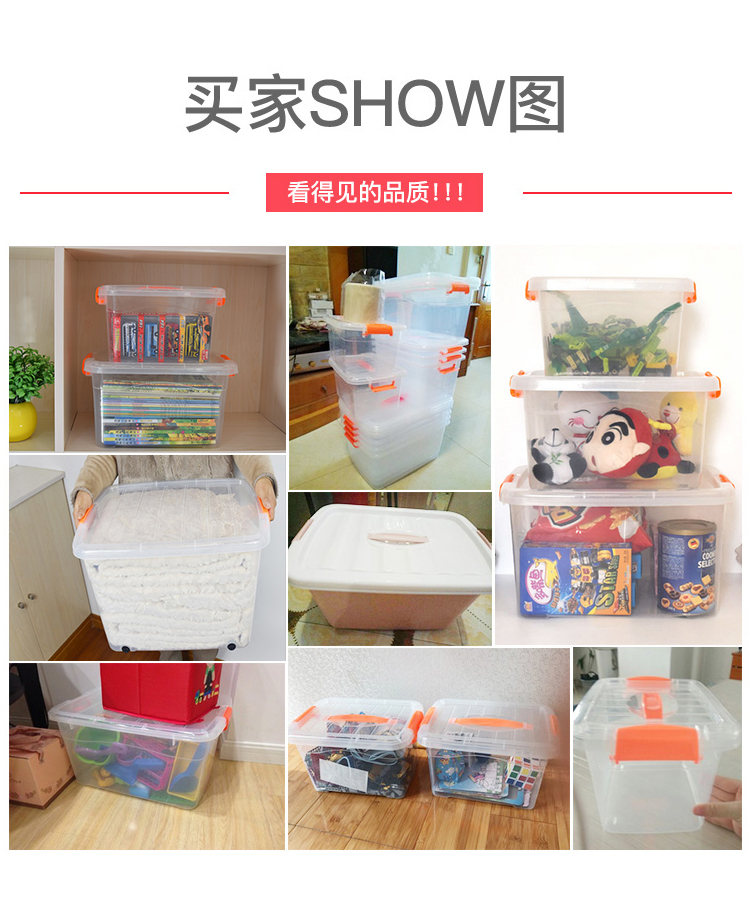 海斯迪克 塑料带提手工具收纳箱 gnjz-733 PP 透明款 特大号带轮65L 1个