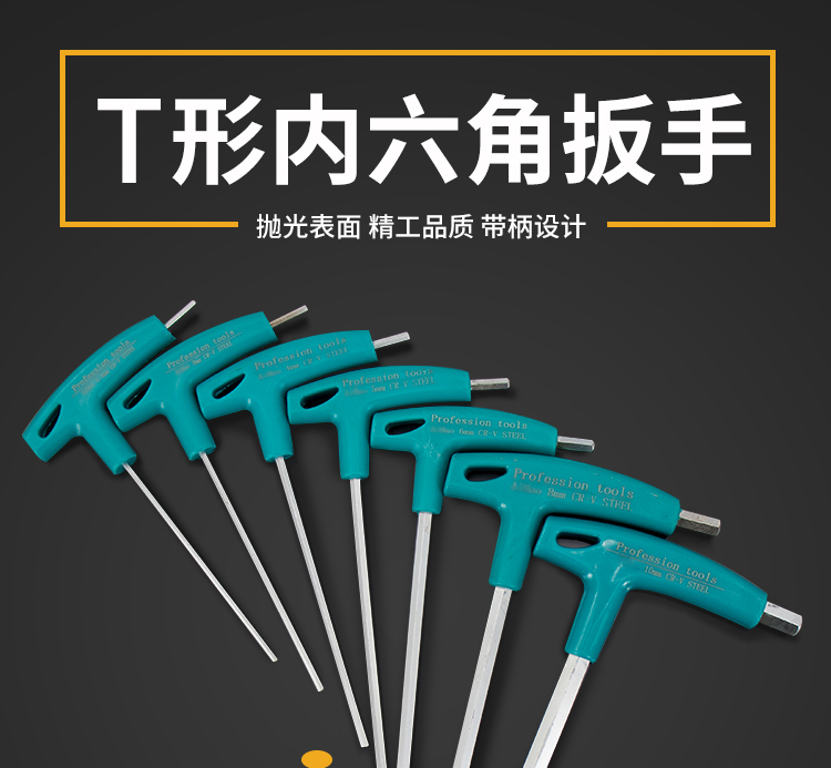 海斯迪克 T型内六角扳手 gnjz-456 铬钒钢 电镀抛光 4mm 5支 1套