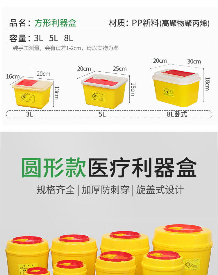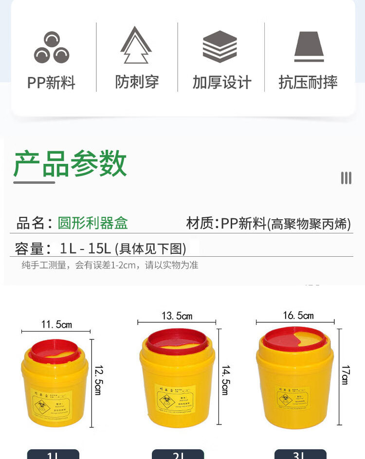 冰禹 利器盒 BY-1251 黄色 圆形 1L 10个 1件