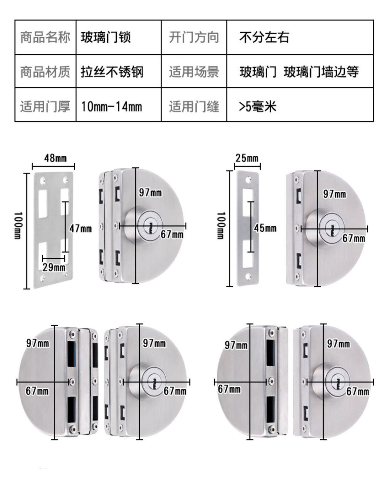 冰禹 玻璃门门锁 BYC-281 不锈钢 双边玻璃单面锁-外钥内无 1个