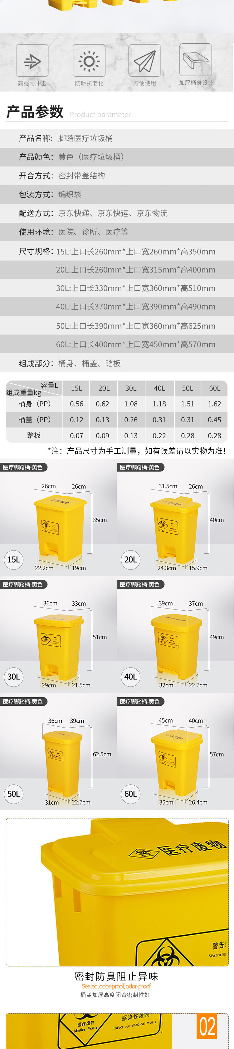 冰禹 医疗垃圾桶 BYrl-42 脚踏式 黄色 40L黄色脚踏款 1个