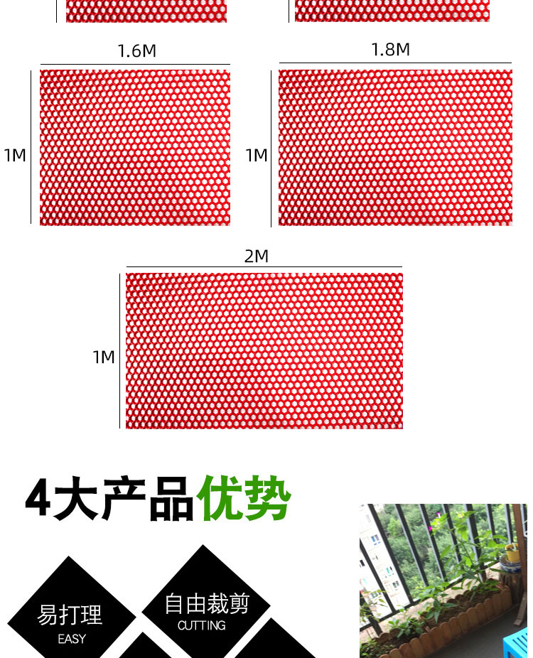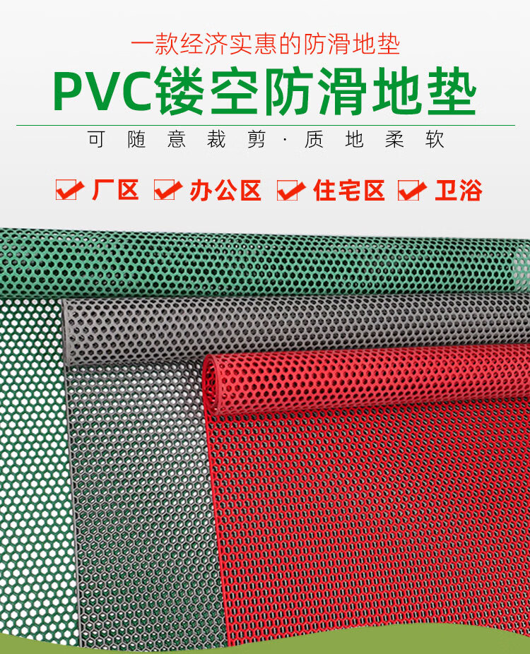 冰禹 六角镂空防滑垫 BYyc-133 PVC 红色 1.2m宽 1米